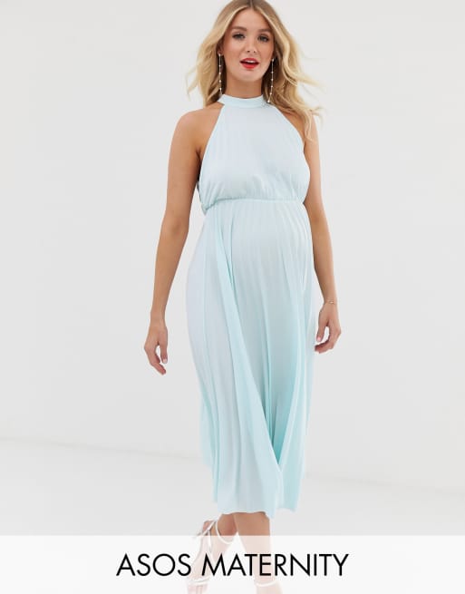 Asos design halter cheap pleated waisted midi dress